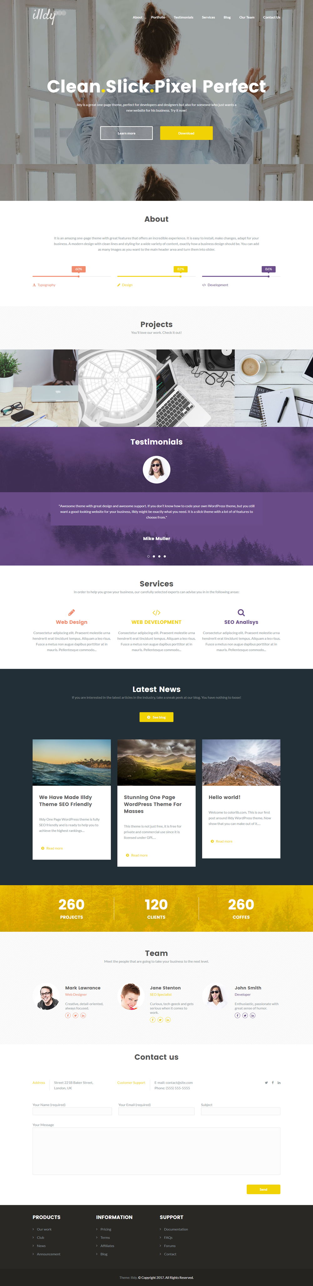 Illdy is a stunning multipurpose WordPress theme built based on Bootstrap frontend framework making it fully responsive and mobile friendly. This theme is well suited for business, landing page, portfolio or any other creative websites. This leaves heavy lifting to WordPress Customizer therefore you can create your website on live preview mode. Which means that you can see changes happen on your website in real time as you make them. This is our most flexible WordPress theme and it is completely free to use for private and commercial websites. Your website will look better than ever thanks to Illdy’s one page setup with multiple sections that can be tweaked to achieve the personalization you have always wanted. This is the only free WordPress theme you will want to use and our support is there to backup our claims. Illdy works with most popular free and premium WordPress plugins such as Contact Form 7, Gravity Forms, Yoast SEO, Jetpack, WP Super Cache, NextGEN Gallery and soon with WooCommerce. This theme is also SEO friendly which will help you you attain the highest rankings on Google and other search engines. This theme comes with fullscreen background image and parallax scrolling enabled sections for sleeker user experience.